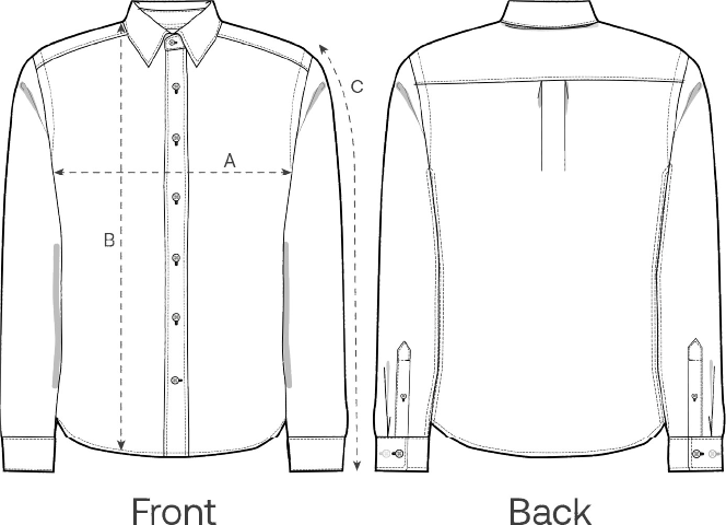 | A: Half Chest (CM) | 53.5 | 56 | 60 | 64 | 68 | 72 |